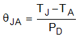 The most popular metric for evaluating semiconductor thermal performance is the junction-to-ambient thermal resistance, θJA. Equation 1 shows that this parameter is defined as the difference between the operating temperature and junction temperature of a device per watt of power dissipated in the device: