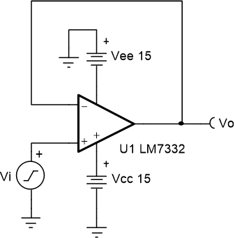 - 使用 ±15V 電源的 LM7332 的輸入共模范圍大于設(shè)計所需的輸入共模范圍。因此,滿足該要求。