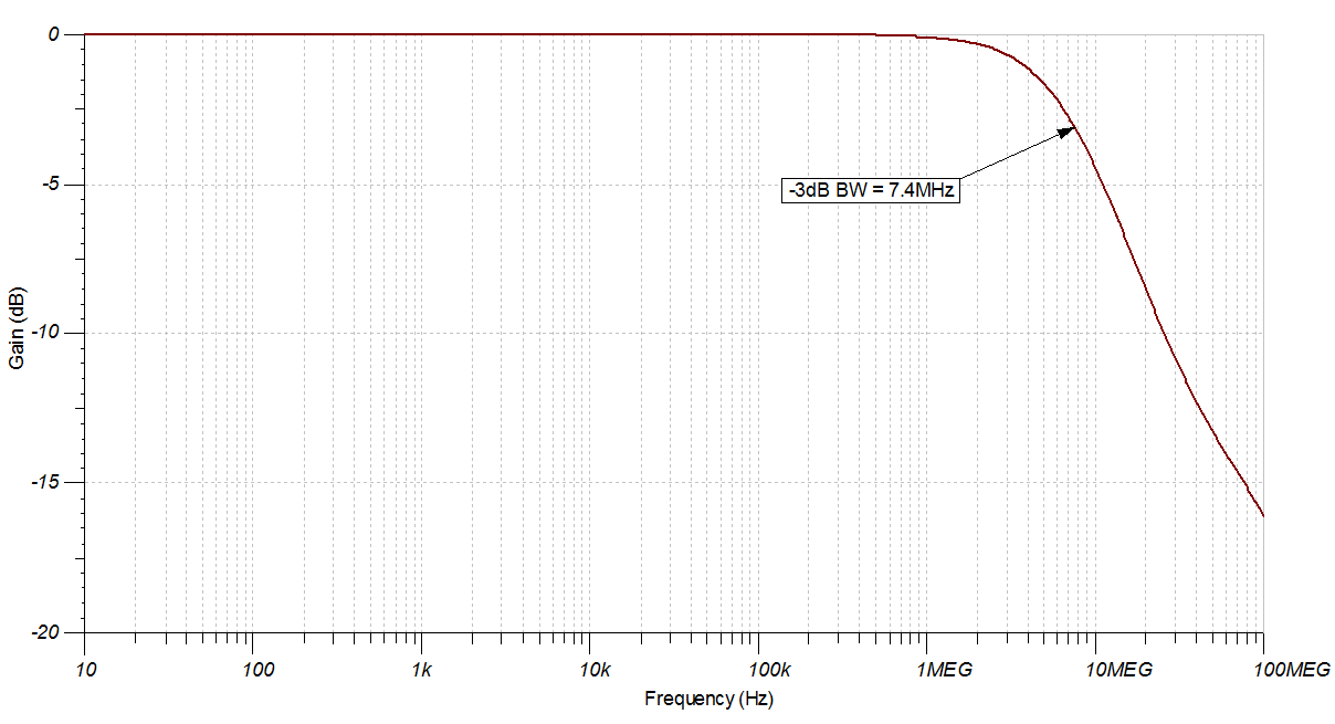- 小信號帶寬由放大器的單位增益帶寬決定。