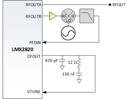 PLL 中的主要噪聲源之一是 N 分頻器。對(duì)于高頻應(yīng)用,N 分頻器必須相當(dāng)大,才能分頻到更合理的低參考頻率。外部 PFD 方法使用外部混頻器繞過(guò)內(nèi)部 N 分頻器。射頻混頻器將 VCO 頻率直接下變頻為 PFD 頻率。當(dāng)然,要有所改進(jìn),與內(nèi)部分頻器相比,混頻操作本身必須具有更低的噪聲。這要求混頻器 LO 本身是低噪聲的。使用 LMX2820 生成需要另一個(gè)頻率音作為 LO 源的頻率音似乎有點(diǎn)矛盾。這將在下一節(jié)中討論。