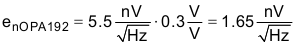 本部分詳細(xì)介紹如何使用簡(jiǎn)化的噪聲計(jì)算方法進(jìn)行粗略估算。OPA192 的噪聲通過電阻分壓器進(jìn)行衰減,如下所示: