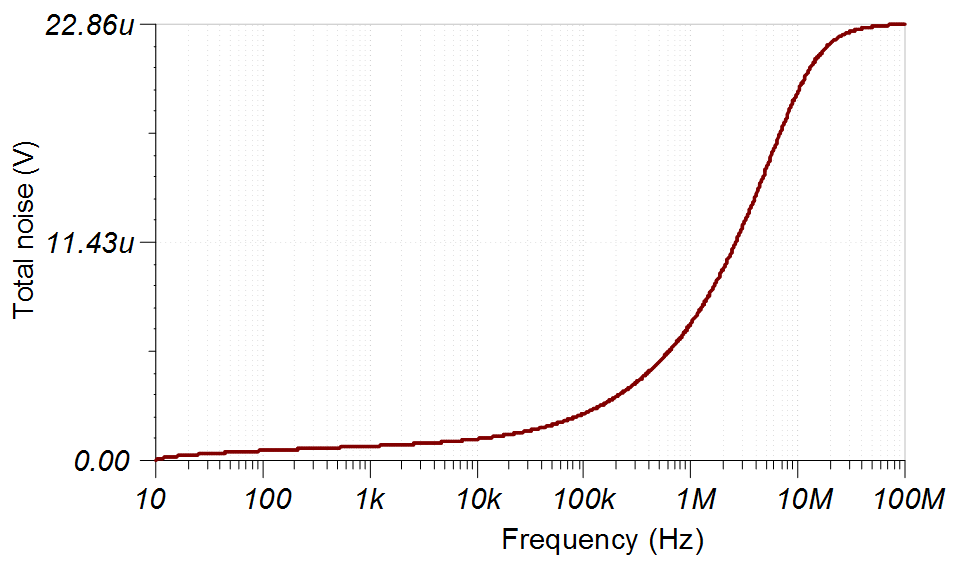 注意,計(jì)算值與仿真值之間匹配良好。請(qǐng)參閱計(jì)算 ADC 系統(tǒng)的總噪聲 視頻,了解有關(guān)此主題的詳細(xì)理論。